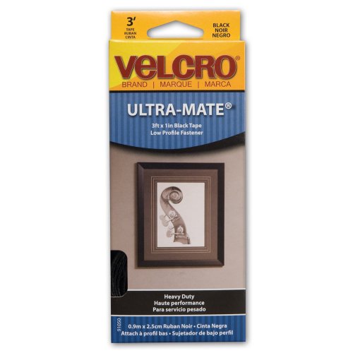 Press-on fastener delivers strong holding power. Simple peel and stick application. For smooth surfaces such as painted wallboard, glass, metal and most plastics. Ultra-thin fasteners provide superior strength with 30% less thickness. Global Product Type: Hook & Loop Fasteners-Self-Adhesive Tape Roll; Hook and Loop Fastener Type: Self-Adhesive Tape Roll; Tape Pad Size: 1" x 3 ft.; Color(s): Black.Velcro Sticky-Back Hook and Loop Ultra-Mate Strong Fastener Tape, 1 Inches x 3 Feet Roll, Black (91050) Specifications